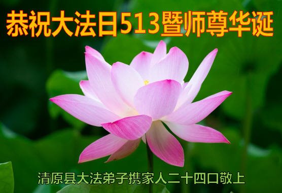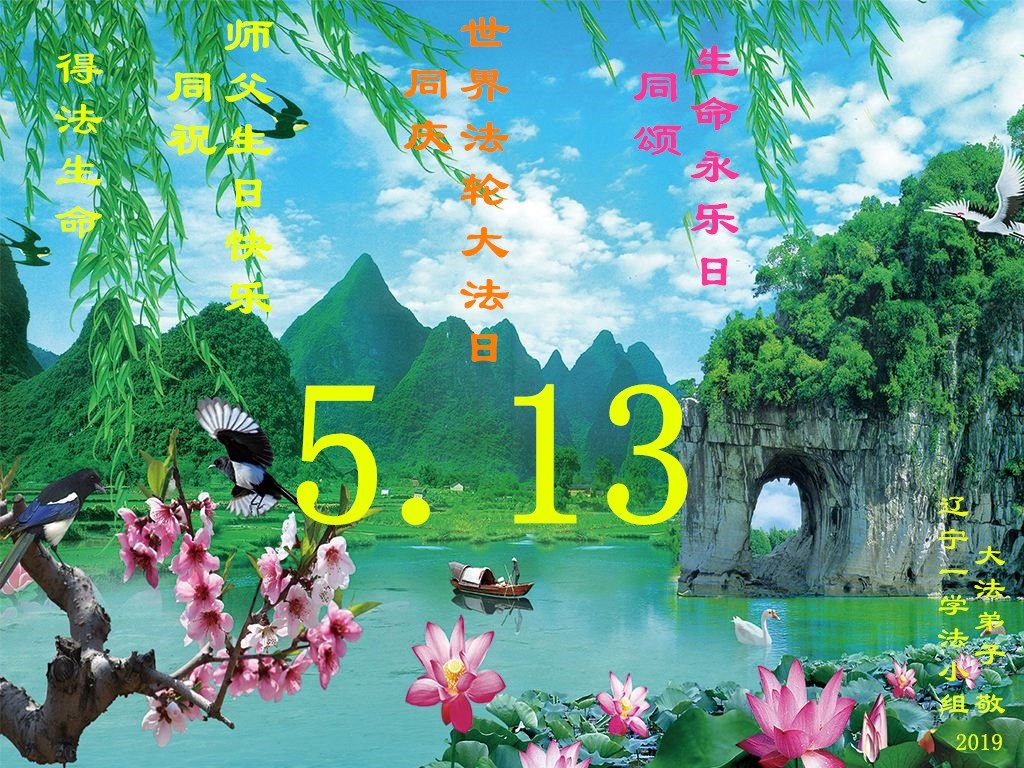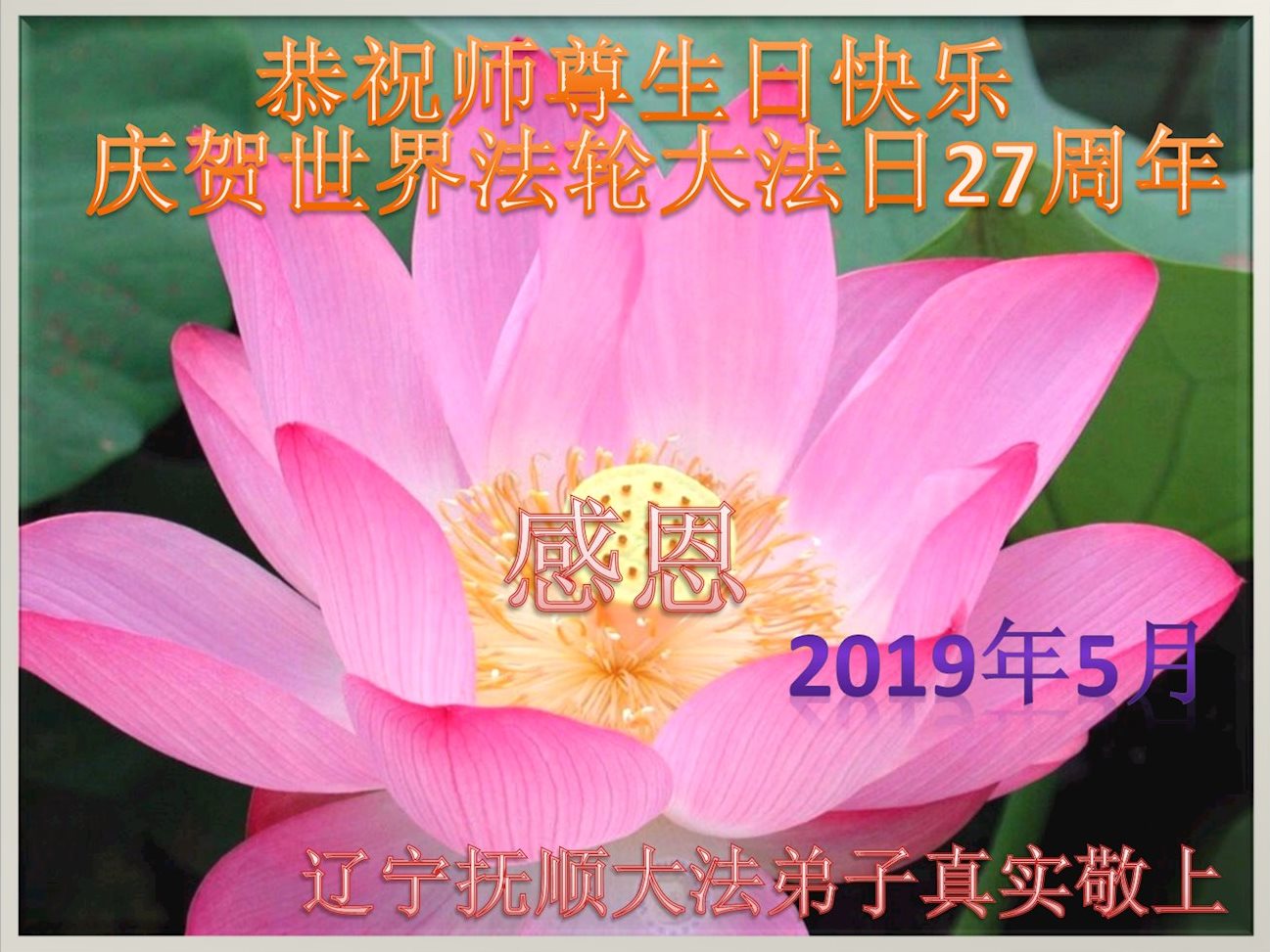 得法生命 同祝师父生日快乐! 同庆世界法轮大法日 同颂生命永乐日五一三 辽宁一学法小组大法弟子 敬 辽宁省抚顺市大法弟子普天同庆世界法轮大法日!