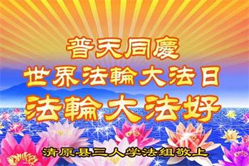 辽宁省抚顺市清原县三人学法组大法弟子恭贺世界大法日!