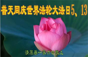 辽宁省抚顺市清原县一家六口恭贺世界大法日暨师尊华诞!
