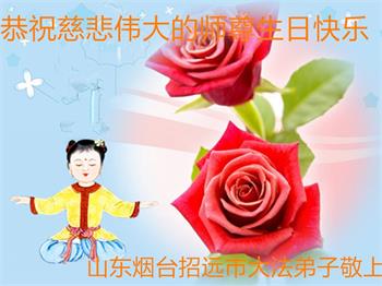 山东烟台招远市大法弟子恭祝慈悲伟大的师尊生日快乐!