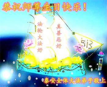 山东省泰安一大法弟子恭祝师尊生日快乐!