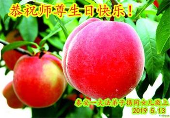 【明慧网二零一九年五月九日】 山东省威海市文登区大法弟子恭祝师尊生日快乐!