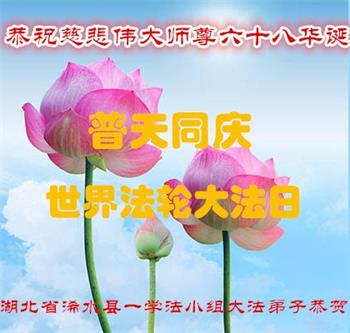 湖北省黄冈市红安县全体大法弟子恭贺第20届世界法轮大法日! 湖北省武汉市汉阳区全体大法弟子恭祝慈悲伟大的师尊生日快乐!