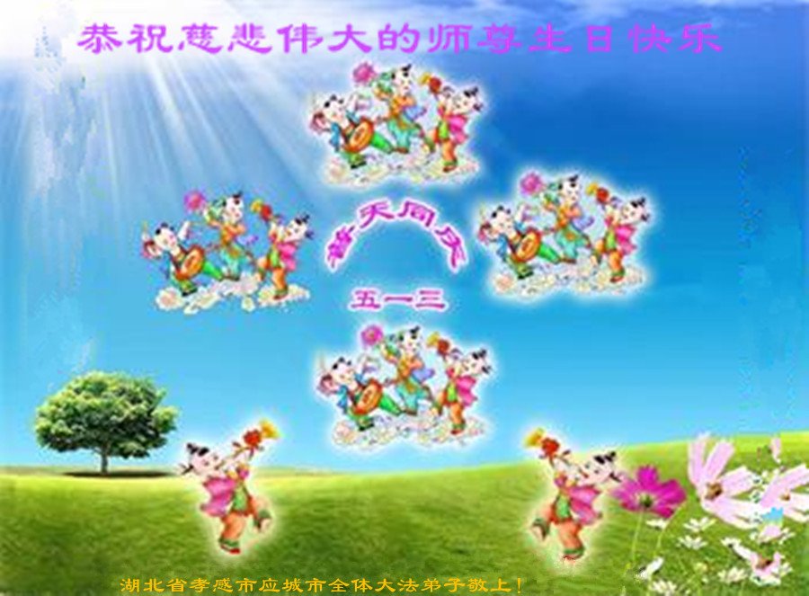 湖北省孝感市应城市全体大法弟子恭祝慈悲伟大的师尊生日快乐!普天同庆5·13!
