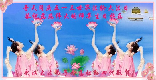 武汉市汉阳区全体大法弟子恭祝慈悲伟大的师尊生日快乐!正法早成 湖北省武汉一大法弟子及家人敬贺师尊生日快乐!