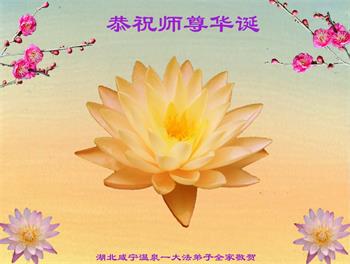 湖北咸宁温泉一大法弟子全家敬贺师尊华诞!