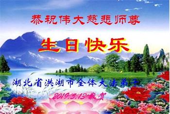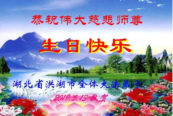 湖北省荆州市洪湖市全体大法弟子普天同庆5.13世界法轮大法日!恭祝伟大慈悲师尊生日快乐!