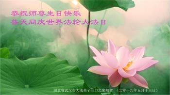 湖北省武汉市大法弟子三口之家恭贺师尊华诞暨世界法轮大法日!