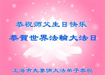 上海市夫妻俩弟子恭祝师父生日快乐!恭贺世界法轮大法日!