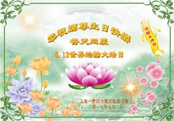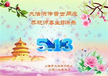 上海市大法弟子恭祝师尊生日快乐!普世同庆世界法轮大法日!