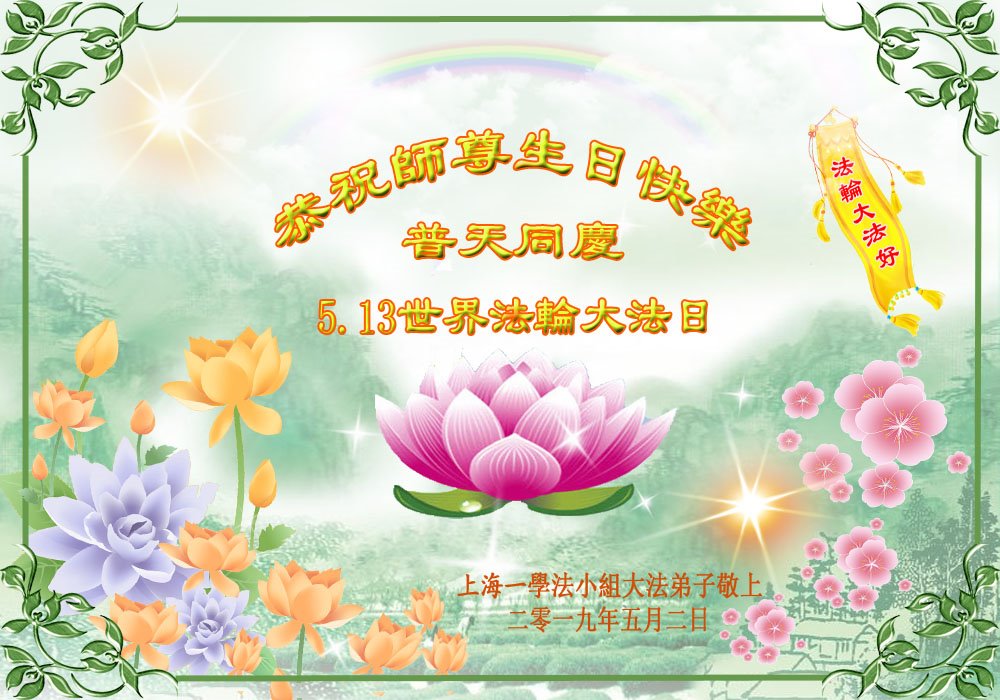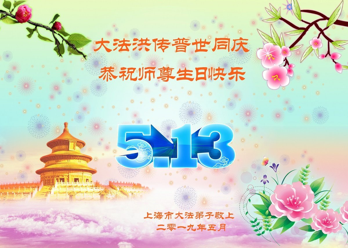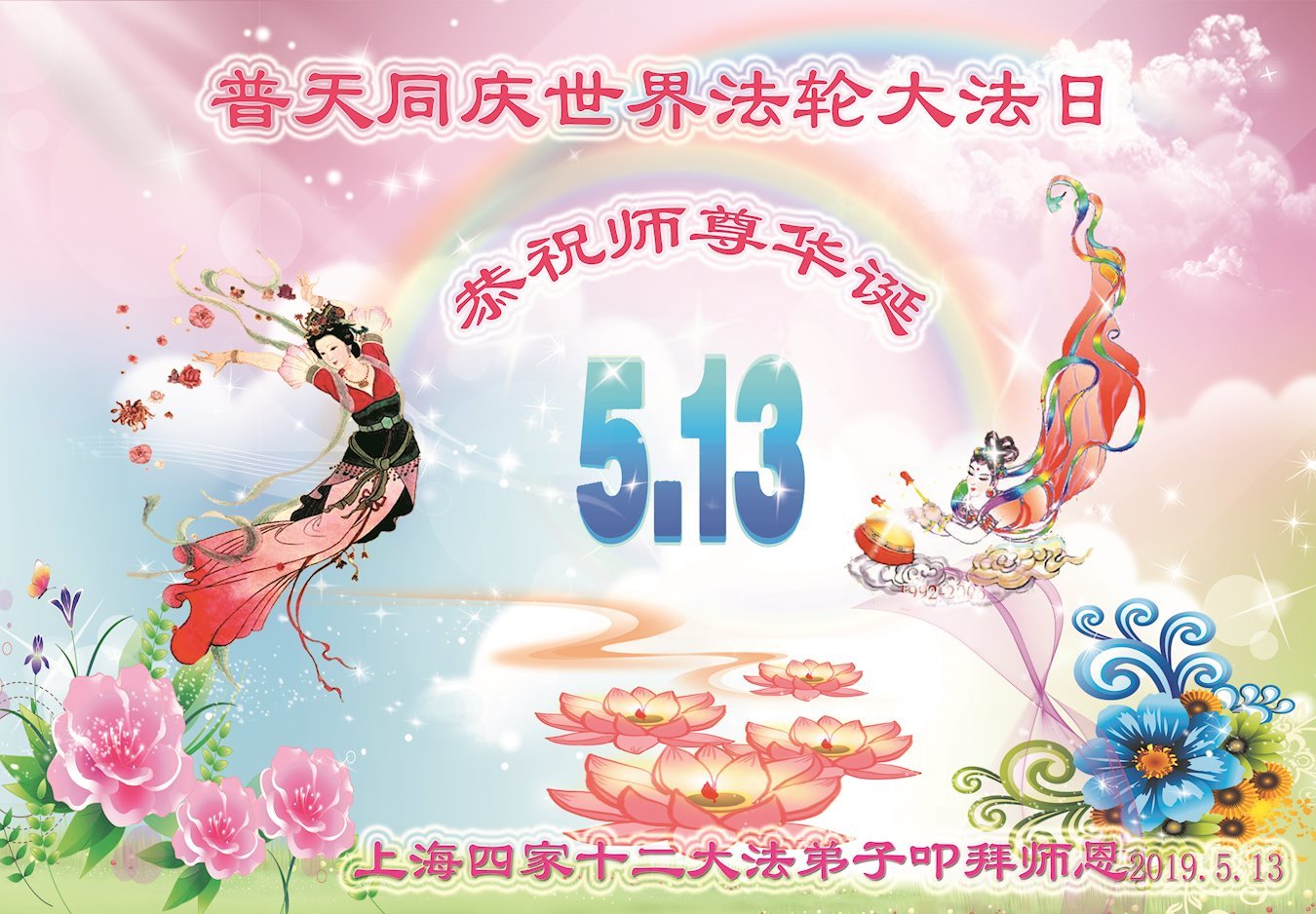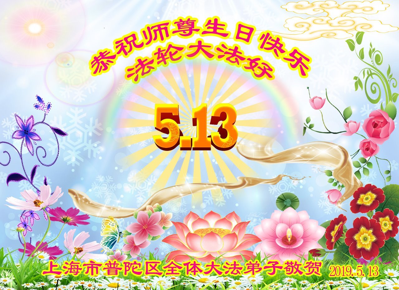 上海市普陀区全体大法弟子叩拜师恩 2019.5.13 上海市三人学法组大法弟子恭祝师父生日快乐!恭贺世界法轮大法日!