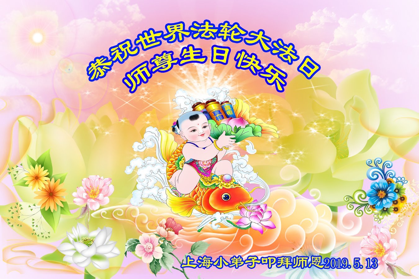 【明慧网二零一九年五月九日】 上海浦东金桥一学法小组大法弟子恭祝师尊生日快乐!