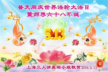 上海讲真相三人小组大法弟子恭祝世界法轮大法日暨师尊六十八华诞!