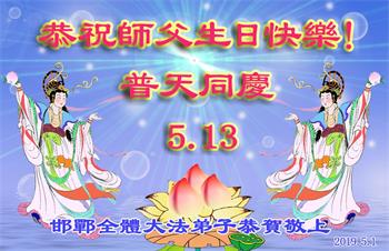 谢谢师父慈悲苦度,师父您辛苦了,在正法的最后,我要勇猛精進,做好三件事,圆满随师还。 河北省邯郸地区大法弟子恭祝师父生日快乐!及5.13世界法轮大法日!