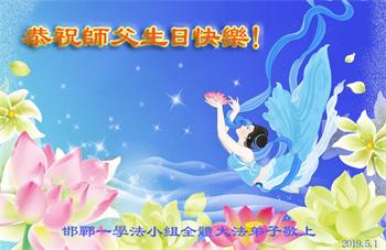 河北邯郸曲周一学法小组全体大法弟子向慈悲伟大的师父问好!恭祝师父生日快乐!