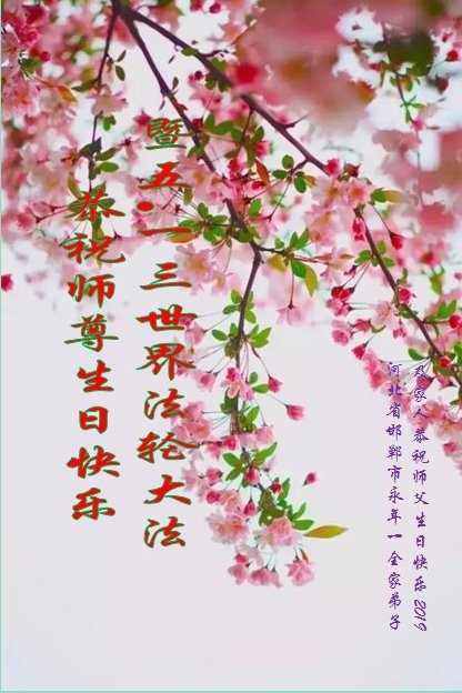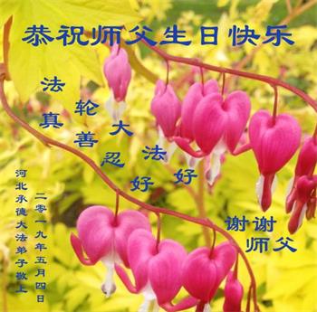 【明慧网二零一九年五月九日】 河北承德围场大法弟子恭贺世界法轮大法日并祝师尊生日快乐!