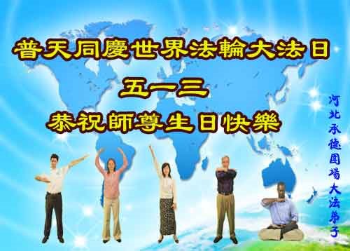 五月十三日即将来临,这一天是我们伟大师尊的生日!又是世界法轮大法日!让我们共同祝贺!河北邢台大法弟子 河北省邯郸市曲周县全体大法弟子恭祝师父生日快乐!叩拜师父!