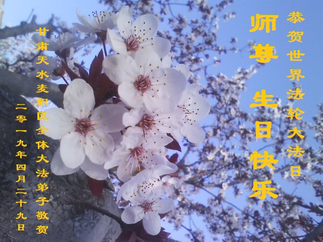 恭祝师尊生日快乐! 甘肃天水大法弟子恭祝师尊华诞暨法轮大法洪传二十七周年!