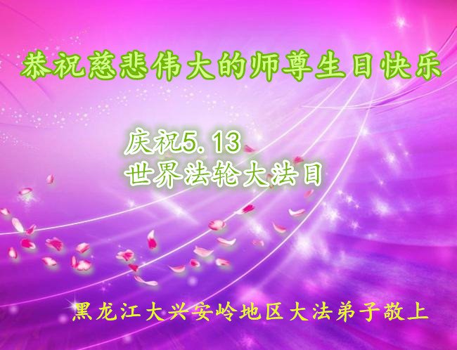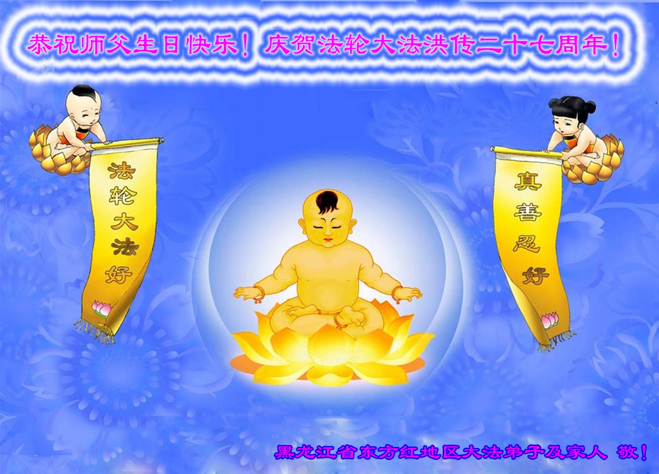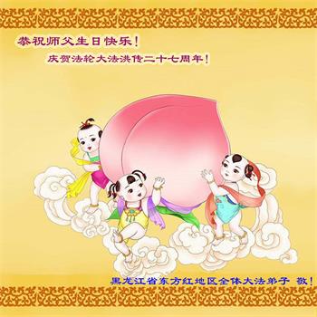 黑龙江省东方红地区全体大法弟子恭祝师父生日快乐!庆贺法轮大法洪传二十七周年!