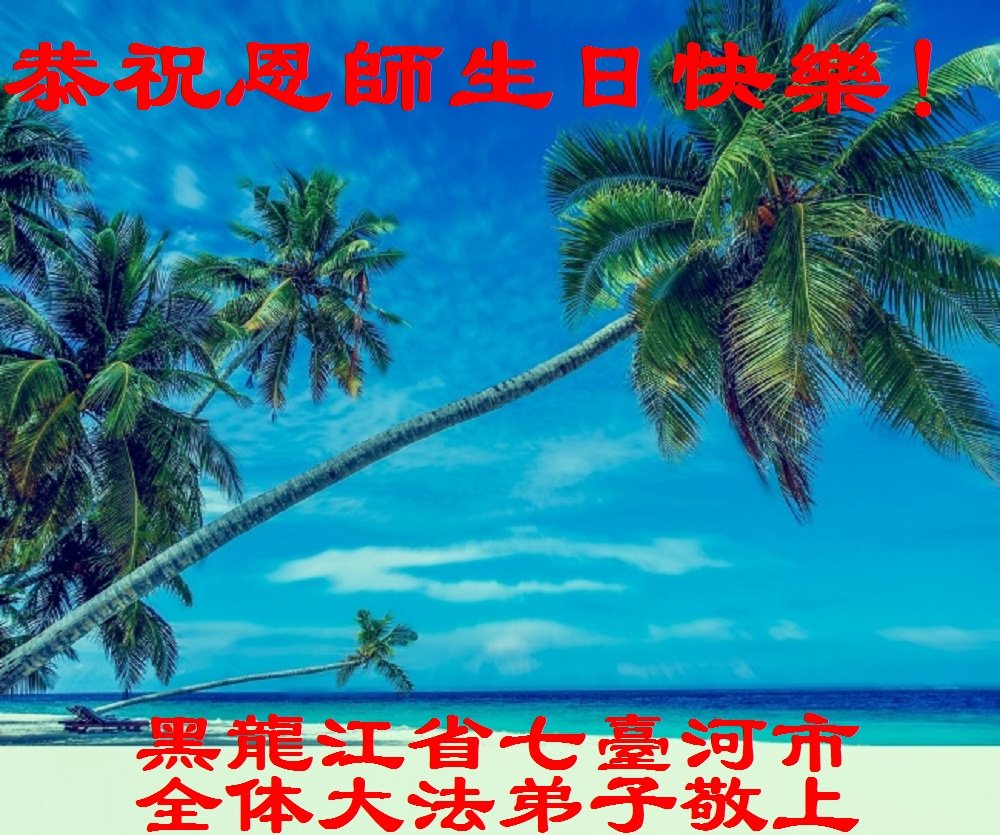 黑龙江省七台河市茄子河区全体大法弟子恭祝恩师生日快乐!