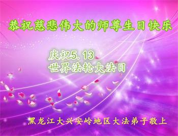 【明慧网二零一九年五月九日】 黑龙江省大兴安岭地区大法弟子恭祝师父生日快乐!