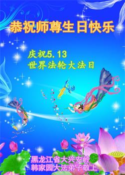 黑龙江省大兴安岭地区韩家园大法弟子恭祝师父生日快乐!