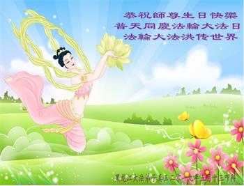 感恩师父慈悲救度,祝师尊生日快乐! 黑龙江省哈尔滨市五常市山河镇一大法弟子恭贺世界法轮大法日暨师尊华诞!恭祝师尊生日快乐!