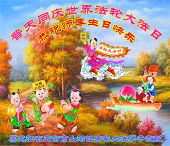 黑龙江省哈尔滨市五常市山河镇一老年大法弟子恭贺世界法轮大法日暨师尊华诞!