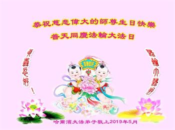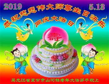 【明慧网二零一九年五月九日】 黑龙江省哈尔滨市双城区联兴乡全体大法弟子恭祝慈悲伟大的师尊生日快乐!