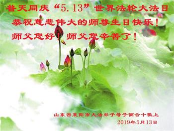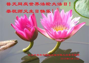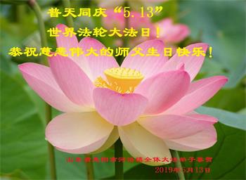 山东省烟台市莱阳市河洛镇全体大法弟子恭祝慈悲伟大的师尊生日快乐!恭贺世界法轮大法日!