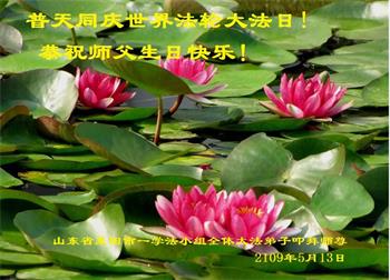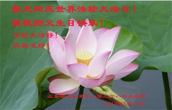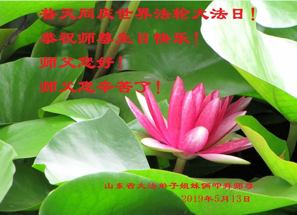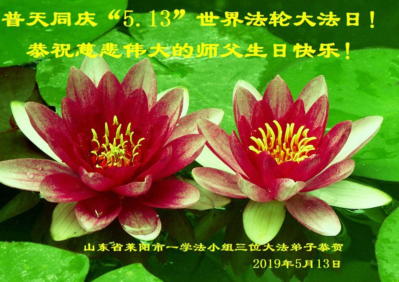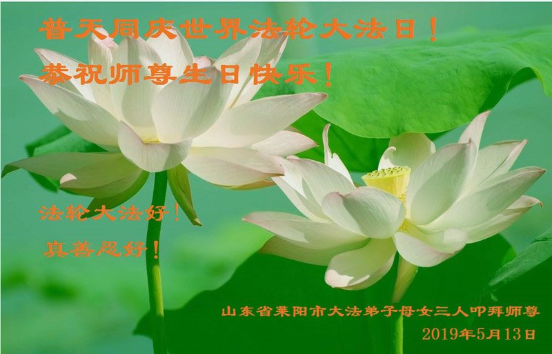 山东省莱阳市一学法小组全体大法弟子向慈悲伟大的师尊致以崇高的敬意!衷心恭祝慈悲伟大的师尊生日快乐!恭贺世界法轮大法日! 山东省大法弟子姐妹俩恭祝慈悲伟大的师尊生日快乐!恭贺世界法轮大法日!