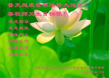 山东省烟台市莱阳市一学法小组全体大法弟子恭祝慈悲伟大的师尊生日快乐!普天同庆世界法轮大法日!