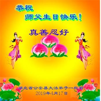 湖北一老年大法弟子向师尊问好!恭祝师尊生日快乐!