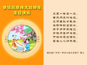 湖北省随州市广水市全体大法弟子恭祝慈悲伟大的师尊生日快乐!普天同庆法轮大法日!