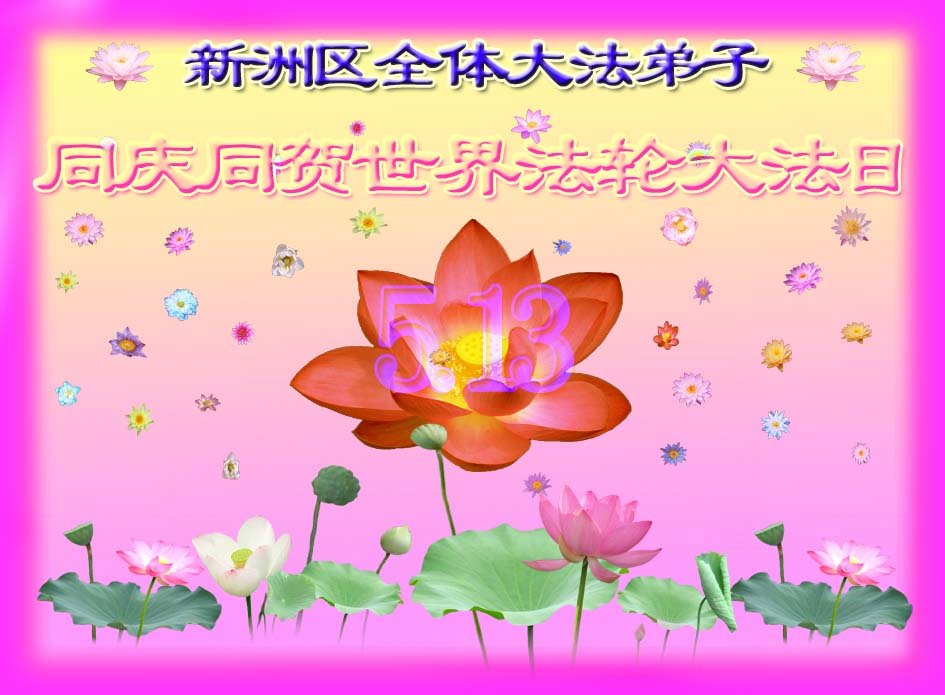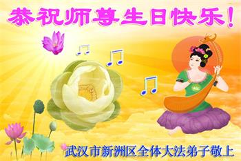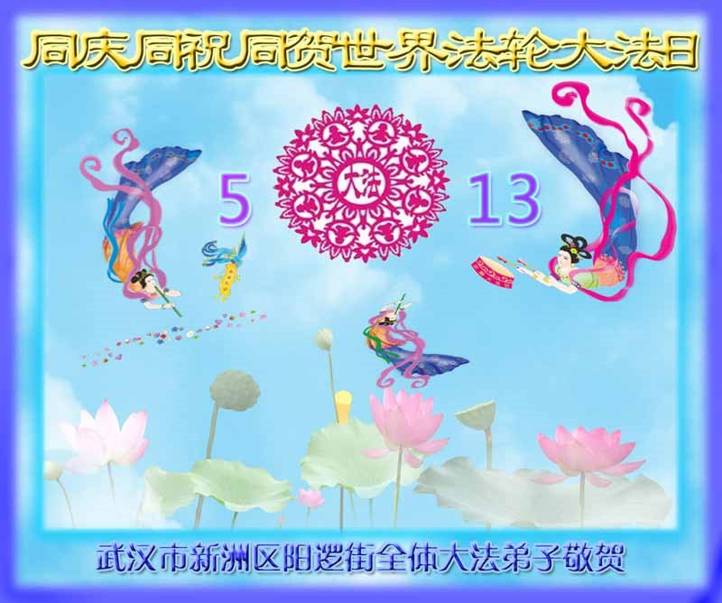 弟子恭祝慈悲、伟大的师尊生日好!世界法轮大法日好!坚定做好大法弟子的三件事,多救人。 湖北省武汉硚口区全体大法弟子恭祝慈悲的伟大师尊生日快乐!普天同庆513法轮大法日!