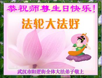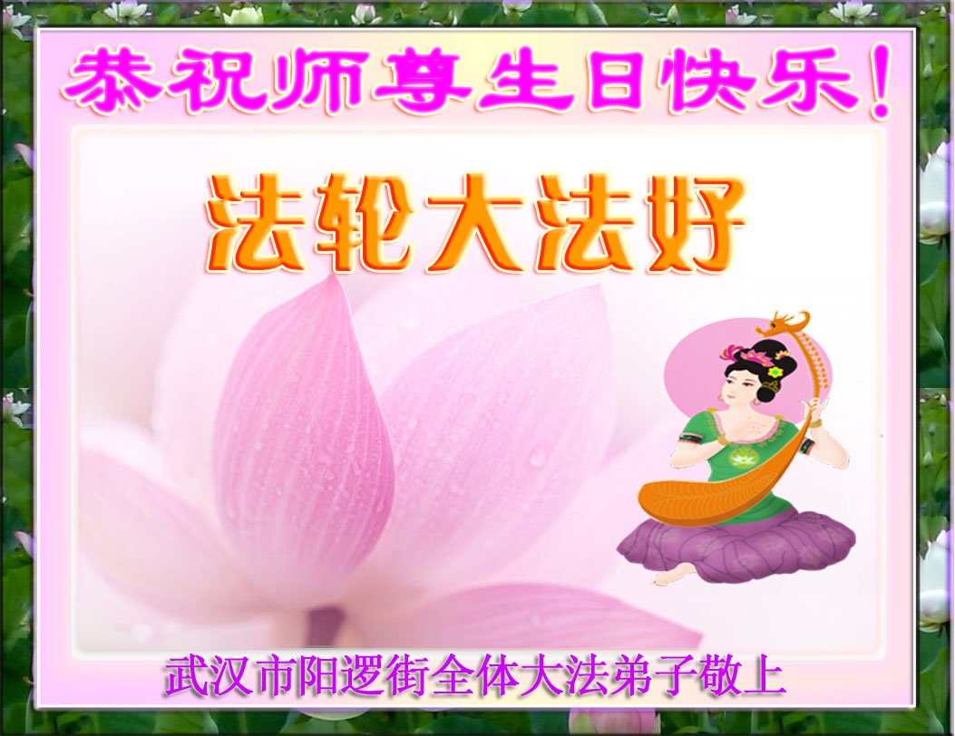 湖北省武汉市阳逻街全体大法弟子恭祝慈悲伟大的师尊生日快乐!