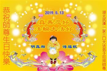 湖北武汉一家三口大法弟子恭祝师尊生日快乐!