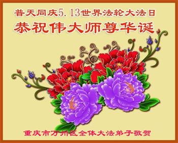 重庆南坪大法弟子叩谢师恩!感谢师父对法轮大法弟子的慈悲苦度! 重庆市万州区全体大法弟子恭祝伟大的师尊华诞!普天同庆世界法轮大法日!