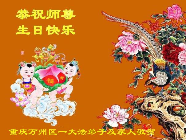 重庆市万州区一大法弟子及家人恭祝师尊生日快乐!