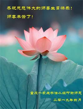 重庆一家庭学法小组大法弟子恭祝慈悲伟大的师尊生日快乐!师尊辛苦了!叩谢师恩!