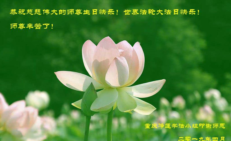 恭祝慈悲伟大的师尊生日快乐!世界法轮大法日快乐!师尊辛苦了!重庆净莲学法小组弟子叩谢师恩! 重庆美莲学法小组大法弟子恭祝慈悲伟大的师尊生日快乐!恭贺法轮大法日!