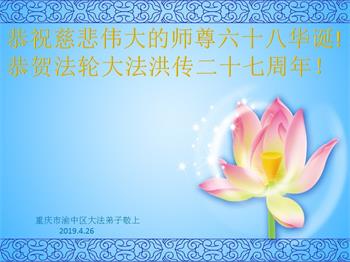 重庆市大法弟子恭祝伟大慈悲的师父生日快乐!恭贺世界法轮大法日!