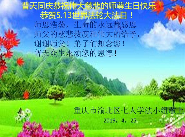 重庆市渝北区七人学法小组大法弟子恭祝伟大慈悲的师尊生日快乐!恭贺世界法轮大法日!