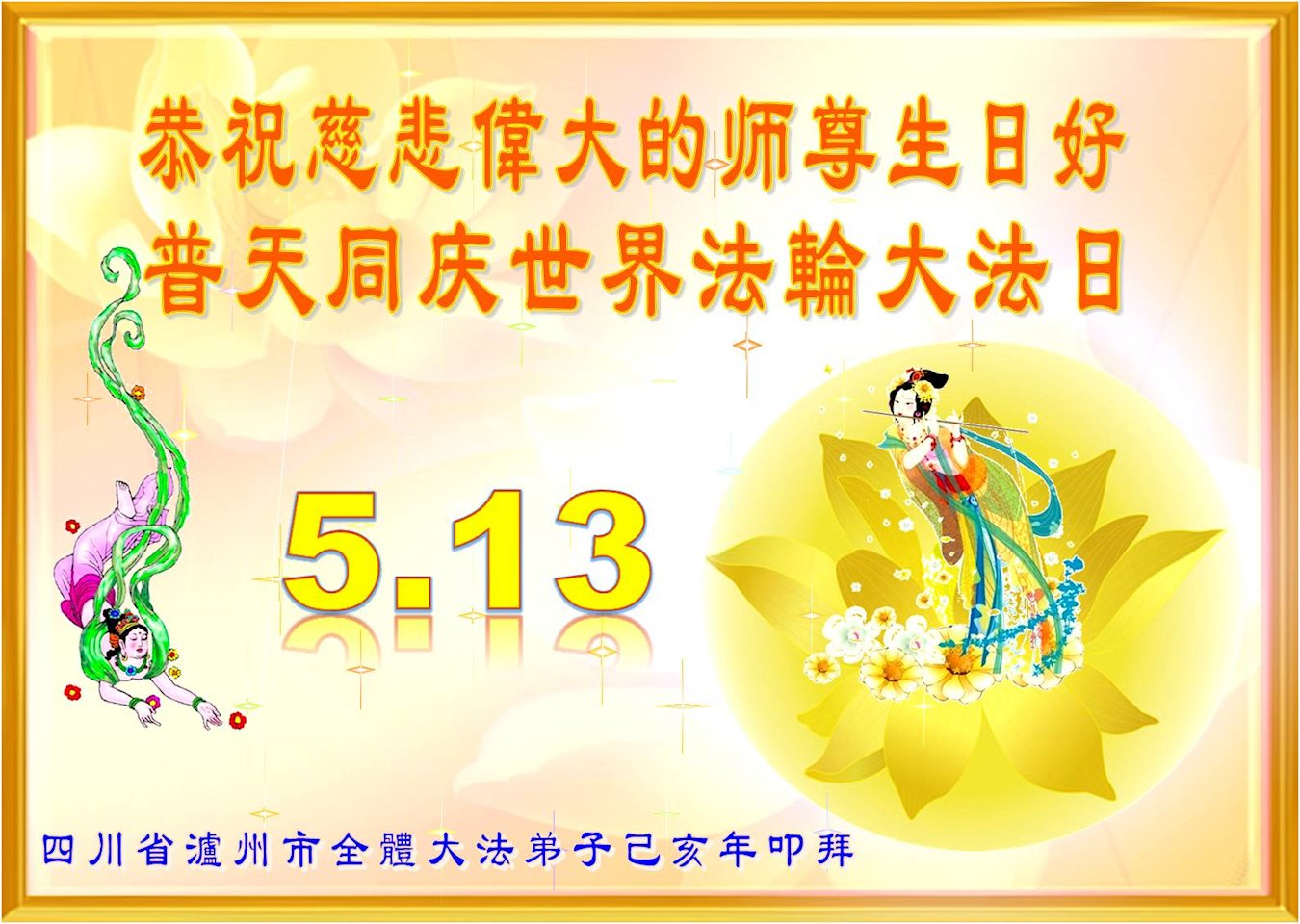 愿更多的世人能够了解大法真相,获益法轮佛法! 四川省泸州市全体大法弟子恭祝慈悲伟大的师尊生日好!