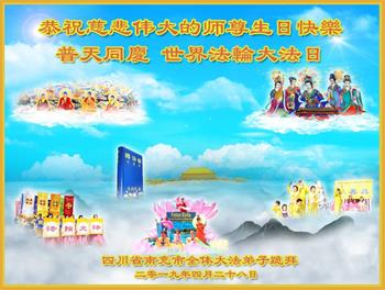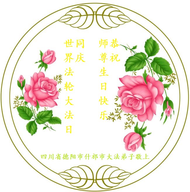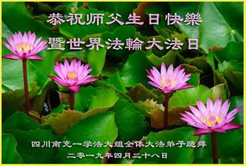 四川南充一学法大组全体大法弟子恭祝师父生日快乐!暨世界法轮大法日! 二零一九年四月二十八日 四川省德阳市什邡市大法弟子恭祝师尊生日快乐!普天同庆世界法轮大法日!