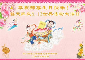 【明慧网二零一九年五月九日】 四川省乐山市全体大法弟子恭祝师父生日快乐!普天同庆5.13世界法轮大法日!