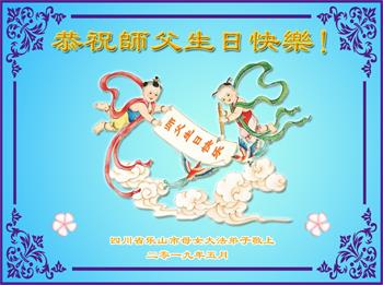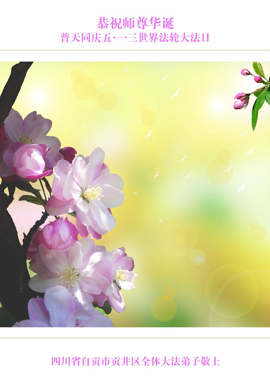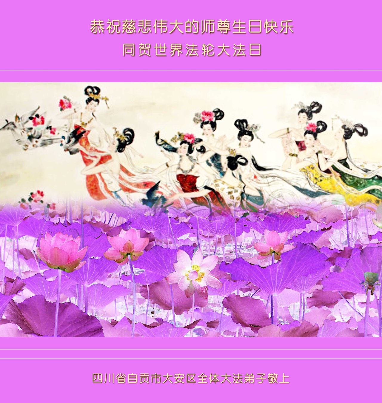 四川省自贡市大安区全体大法弟子恭祝慈悲伟大的师尊生日快乐!同贺五·一三世界法轮大法日!
