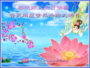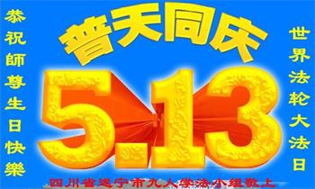 四川省乐山市母女大法弟子恭祝师父生日快乐! 四川省遂宁市九人学法小组大法弟子恭祝师尊生日快乐!同庆5.13世界法轮大法日!