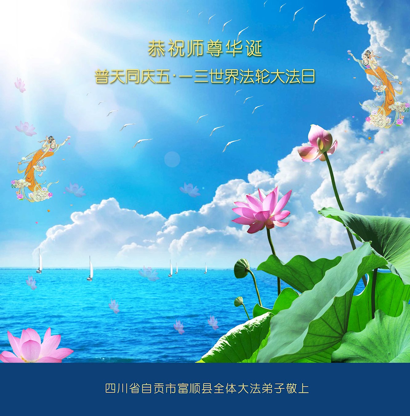 四川省自贡市富顺县全体大法弟子恭祝师尊华诞!普天同庆五·一三世界法轮大法日!