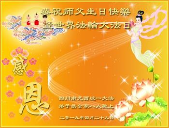 四川阿坝州全体大法弟子恭祝师尊生日快乐!暨世界法轮大法日!